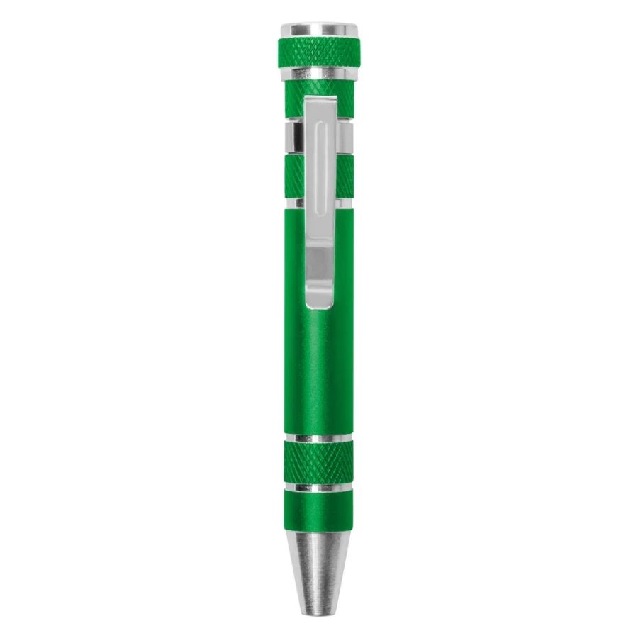 A chave de fendas Tate é um gadget pequeno mas multifacetado que não só os amantes da bricolage vão adorar. Com a forma de uma "caneta" elegante, este ajudante inteligente esconde até oito pontas intercambiáveis - quatro planas e quatro Phillips - facilitando a realização de pequenas reparações em casa, no escritório ou na oficina. Fabricado em alumínio durável, é leve, prático e tem um aspeto muito profissional. Perfeito como um brinde promocional prático que não vai acabar numa gaveta, mas em... utilização quotidiana. Com o logótipo da sua empresa na mala, torna-se um suporte de marca funcional - ideal para feiras comerciais, eventos promocionais ou como presente para os clientes.
